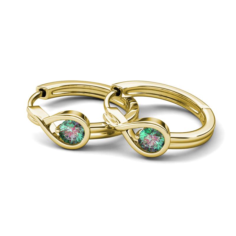 0.70 ctw (4.00 mm) Round Lab Created Alexandrite Infinity Solitaire Women Bezel set Hoop Earrings in 18K Yellow Gold More Details ...