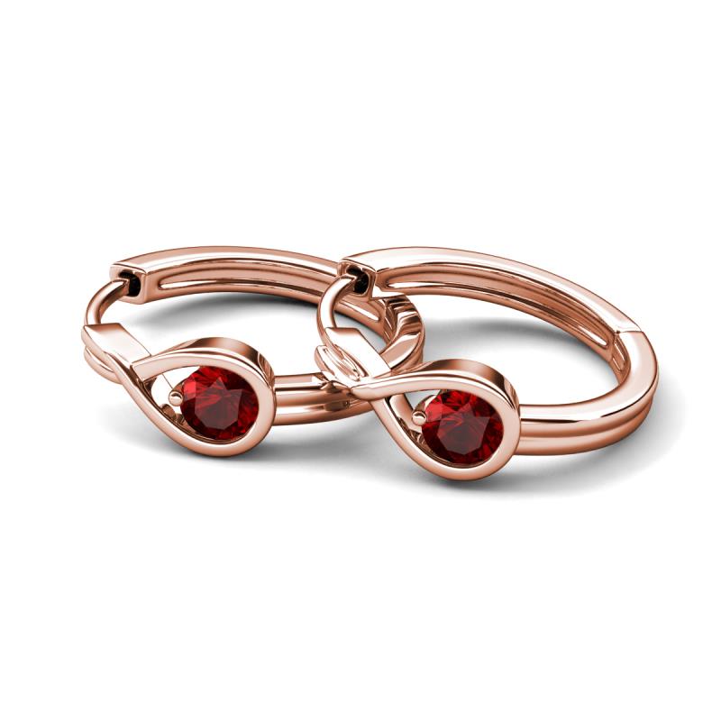 0.63 ctw (4.00 mm) Round Red Garnet Infinity Solitaire Women Bezel set Hoop Earrings in 14K Rose Gold More Details ...