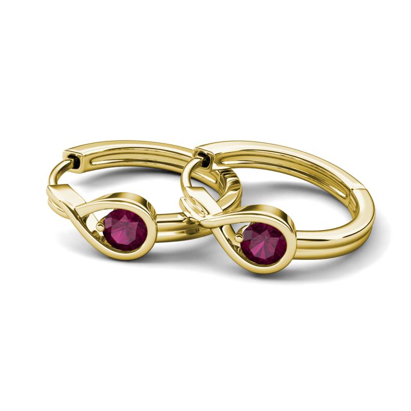 0.63 ctw (4.00 mm) Round Rhodolite Garnet Infinity Solitaire Women Bezel set Hoop Earrings in 14K Yellow Gold More Details ...