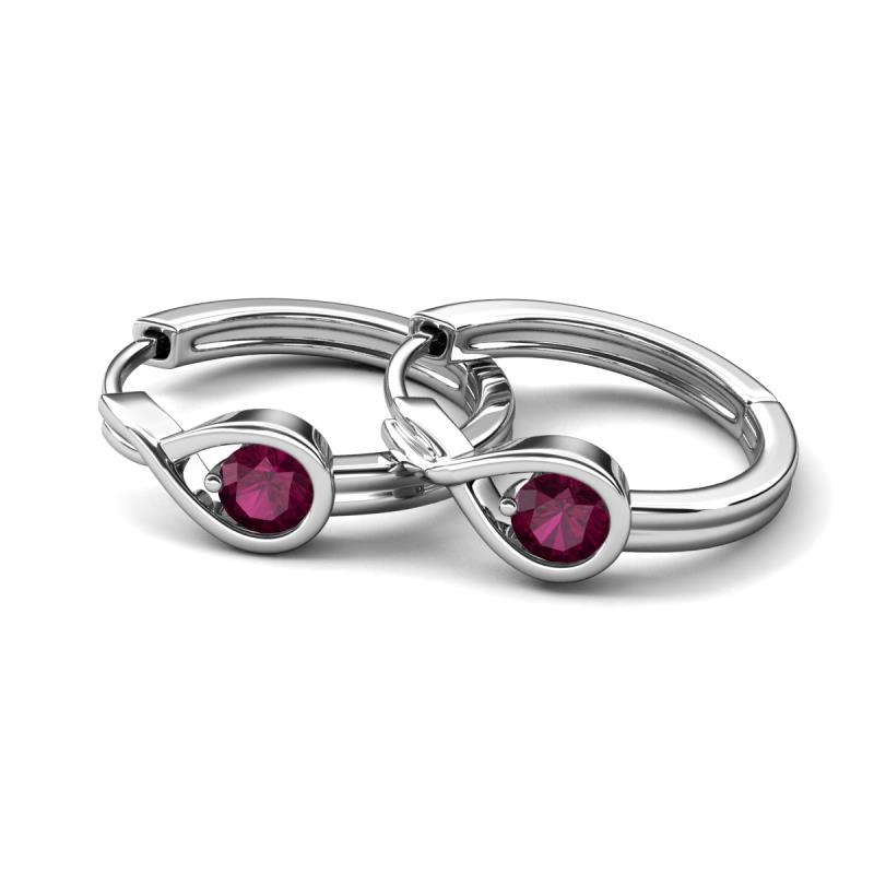 0.63 ctw (4.00 mm) Round Rhodolite Garnet Infinity Solitaire Women Bezel set Hoop Earrings in Platinum More Details ...