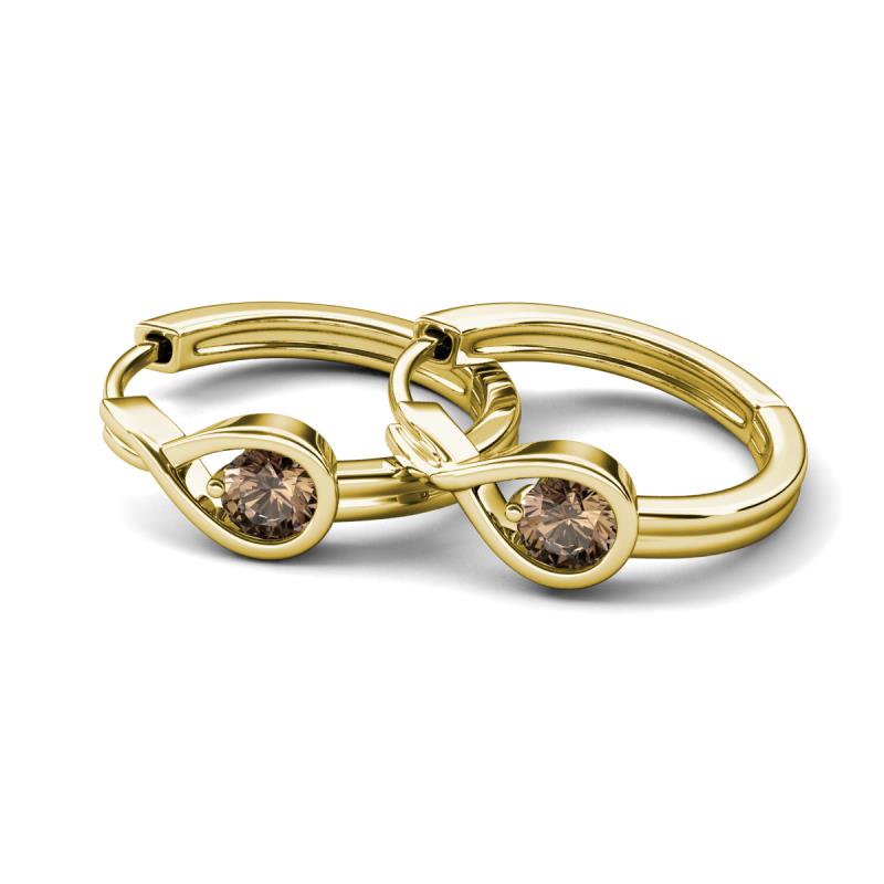 0.48 ctw (4.00 mm) Round Smoky Quartz Infinity Solitaire Women Bezel set Hoop Earrings in 14K Yellow Gold More Details ...