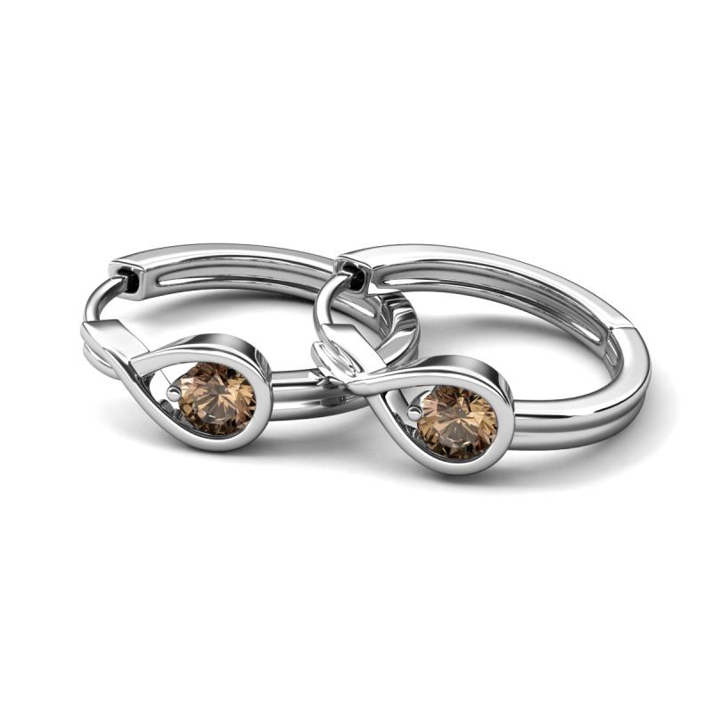 0.48 ctw (4.00 mm) Round Smoky Quartz Infinity Solitaire Women Bezel set Hoop Earrings in 18K White Gold More Details ...