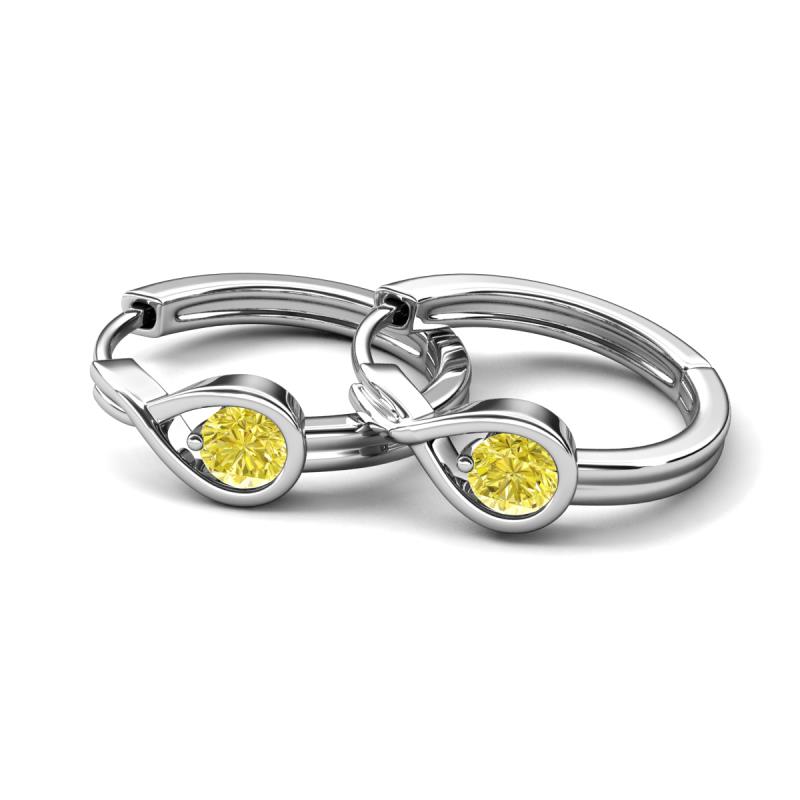 0.50 ctw (4.00 mm) Round Yellow Diamond Infinity Solitaire Women Bezel set Hoop Earrings in 18K White Gold More Details ...