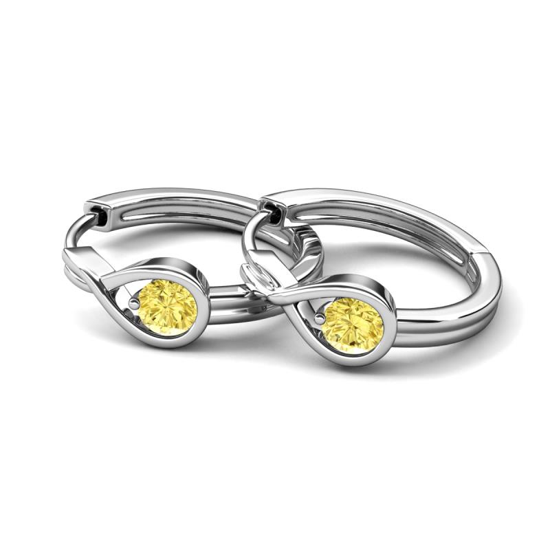 0.53 ctw (4.00 mm) Round Yellow Sapphire Infinity Solitaire Women Bezel set Hoop Earrings in 18K White Gold More Details ...