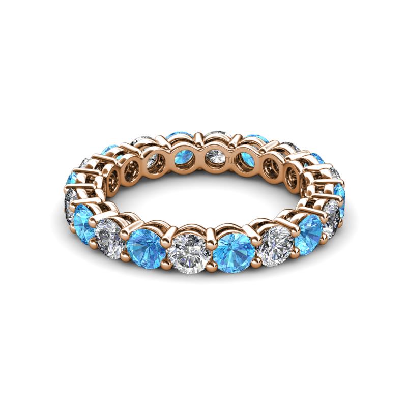 2.90 ctw Blue Topaz and Diamond (3.40 mm) Women Stackable Eternity Ring in 10K Rose Gold More Details ...