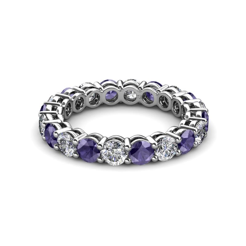 Perfect combination of Elegance and Beauty, this spectacular Eternity Band has Shared Prong set Iolite and Diamond with side gallery design that exude sheer brilliance and is highly flattering on the hand. *As per ring size the stone and carat total weight changes.