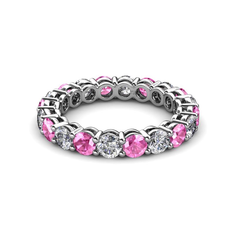 3.08 ctw Pink Sapphire and Lab Grown Diamond (3.40 mm) Women Stackable Eternity Ring in 10K White Gold More Details ...