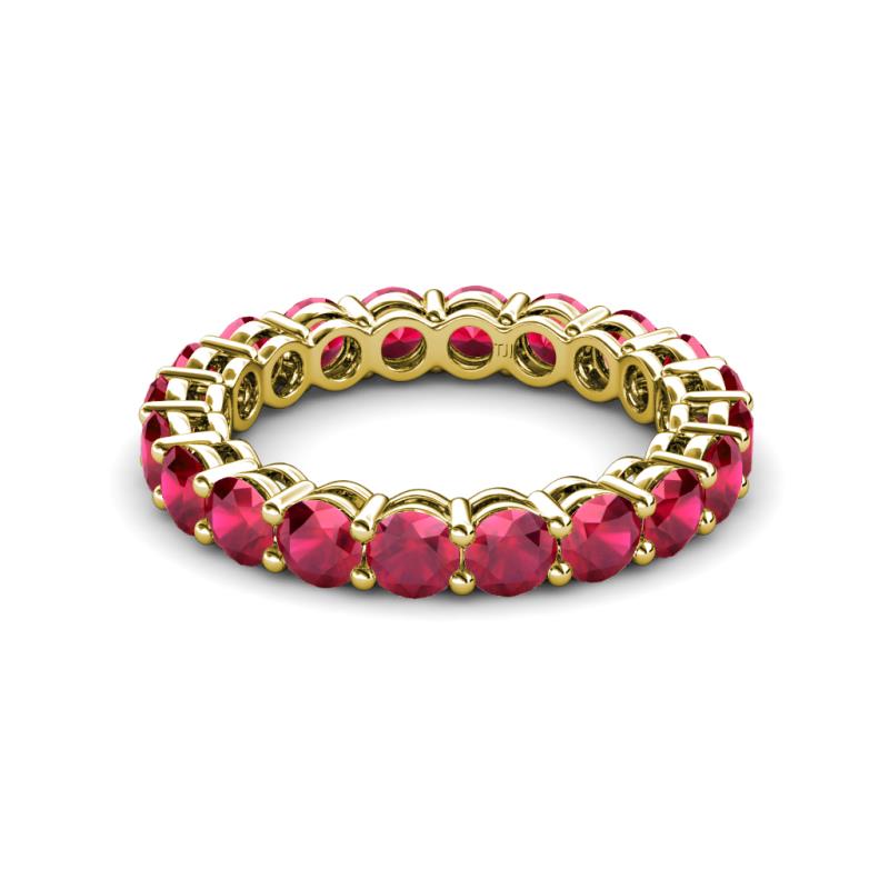 Ruby Shared Prong Eternity Band with Side Gallery Work 2.84 Carat tw-3.31 Carat tw in 18K Yellow Gold. More Details ...