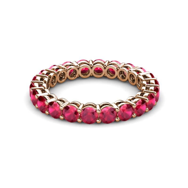 Ruby Shared Prong Eternity Band with Side Gallery Work 2.10 Carat tw-2.42 Carat tw in 10K Rose Gold. More Details ...