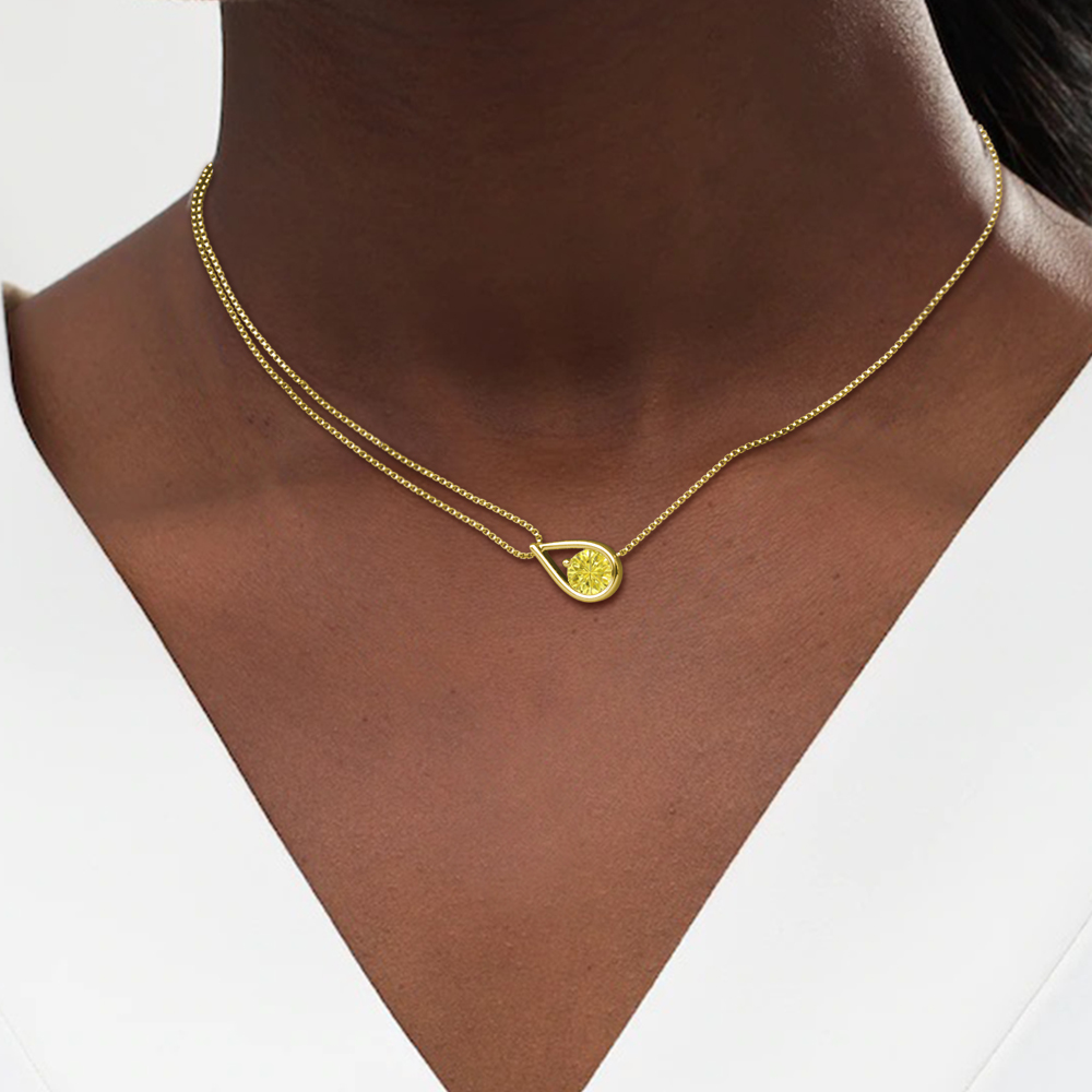 0.80 ct Yellow Diamond (6.00 mm) Women Collier Double Chain Diagonal Teardrop Solitaire Pendant Necklace in 14K Yellow Gold.Included 16 Inches Box Chain 14K Yellow Gold More Details ...