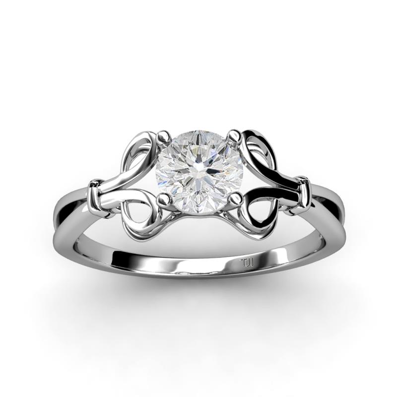This 0.92 ct Solitaire Ring presents prong set White Sapphire surrounded in an Elegant drape of Floral Motif making it more Graceful in its Simplicity.