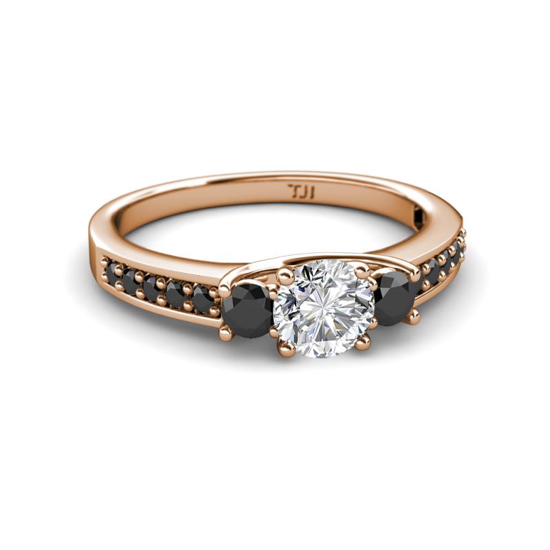 Round Black and White Diamond 1 ctw Womens Three Stone Engagement Ring with Black Diamond on Side Bar 14K Rose Gold More Details ...
