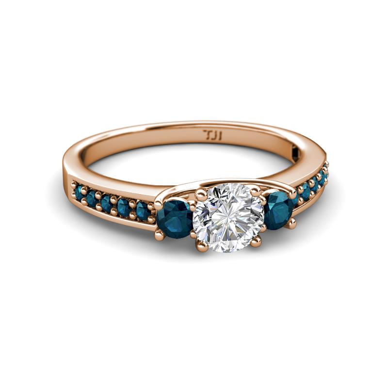 Round Blue and White Diamond 1 ctw Womens Three Stone Engagement Ring with Blue Diamond on Side Bar 14K Rose Gold More Details ...