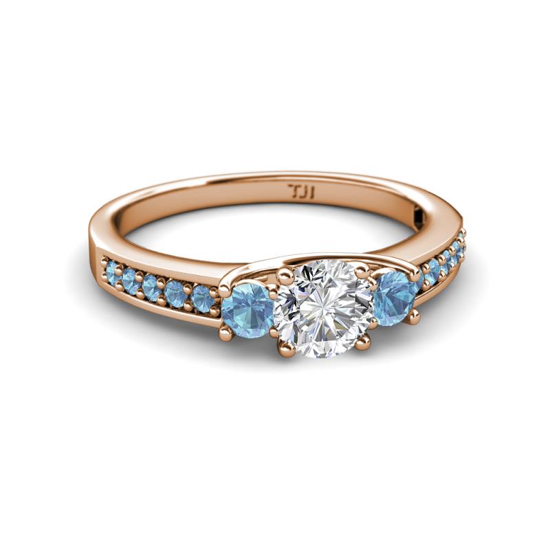 Round Diamond and Aquamarine 1 ctw Womens Three Stone Engagement Ring with Aquamarine on Side Bar 14K Rose Gold More Details ...