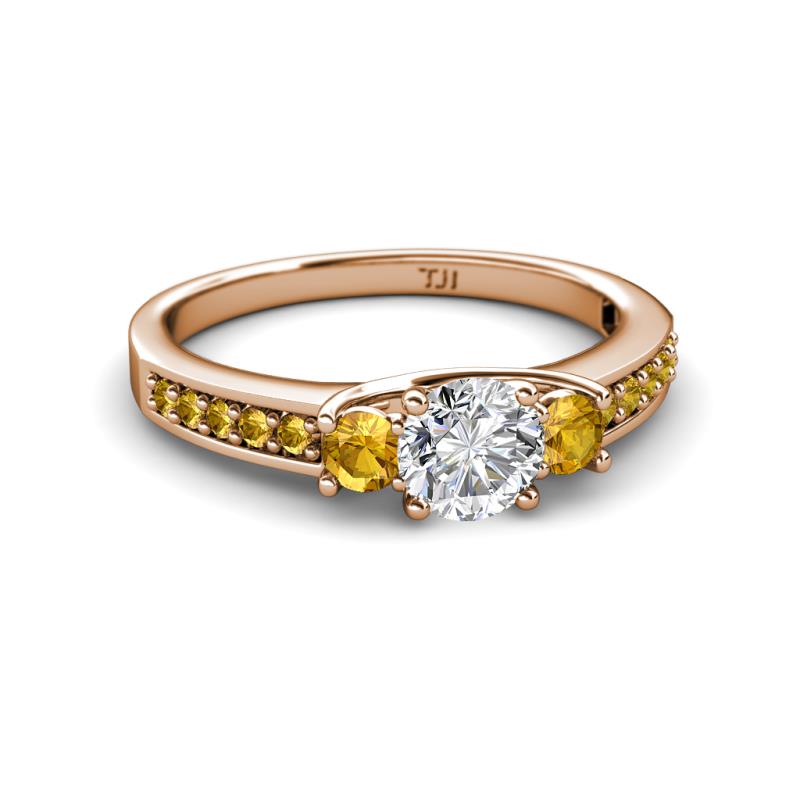 Round Diamond and Citrine 1 ctw Womens Three Stone Engagement Ring with Citrine on Side Bar 14K Rose Gold More Details ...