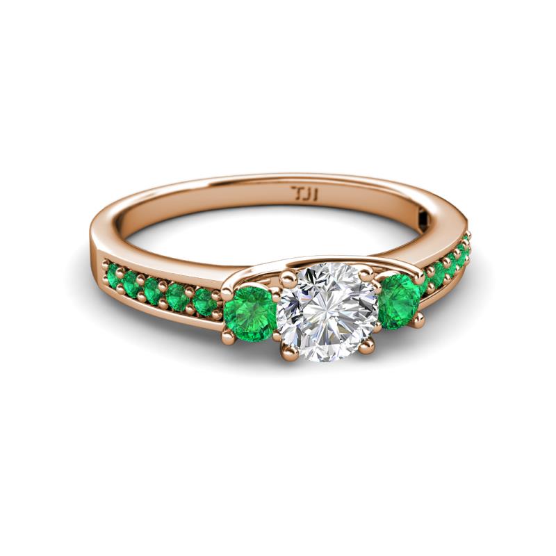Round Diamond and Emerald 1 ctw Womens Three Stone Engagement Ring with Emerald on Side Bar 14K Rose Gold More Details ...