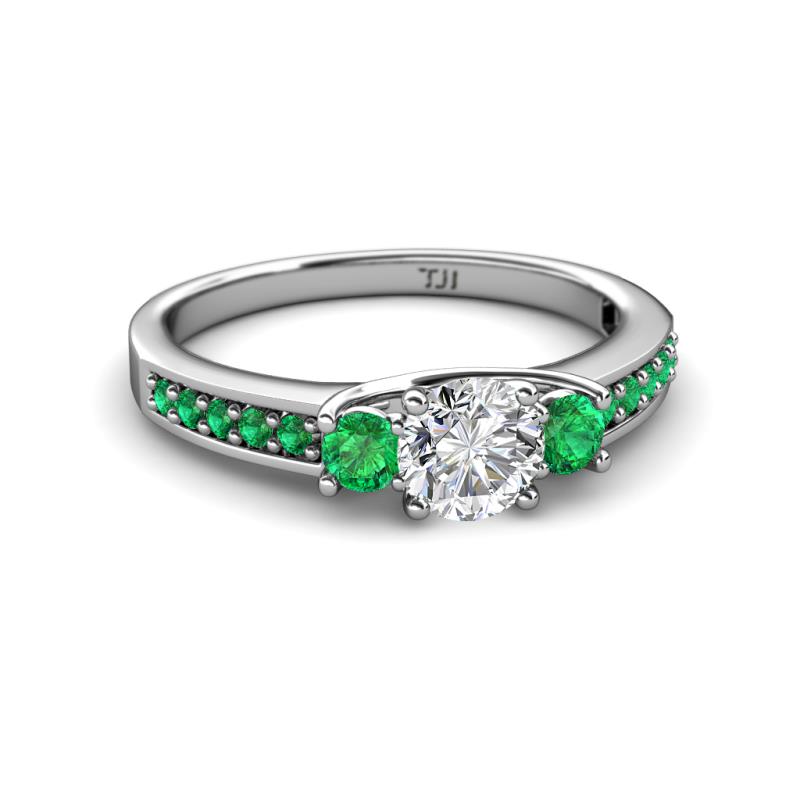 Round Diamond and Emerald 1 ctw Womens Three Stone Engagement Ring with Emerald on Side Bar 925 Sterling Silver More Details ...