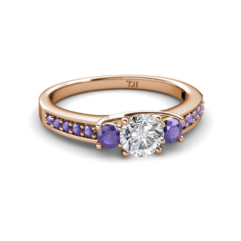 Round Diamond and Iolite 1 ctw Womens Three Stone Engagement Ring with Iolite on Side Bar 14K Rose Gold More Details ...