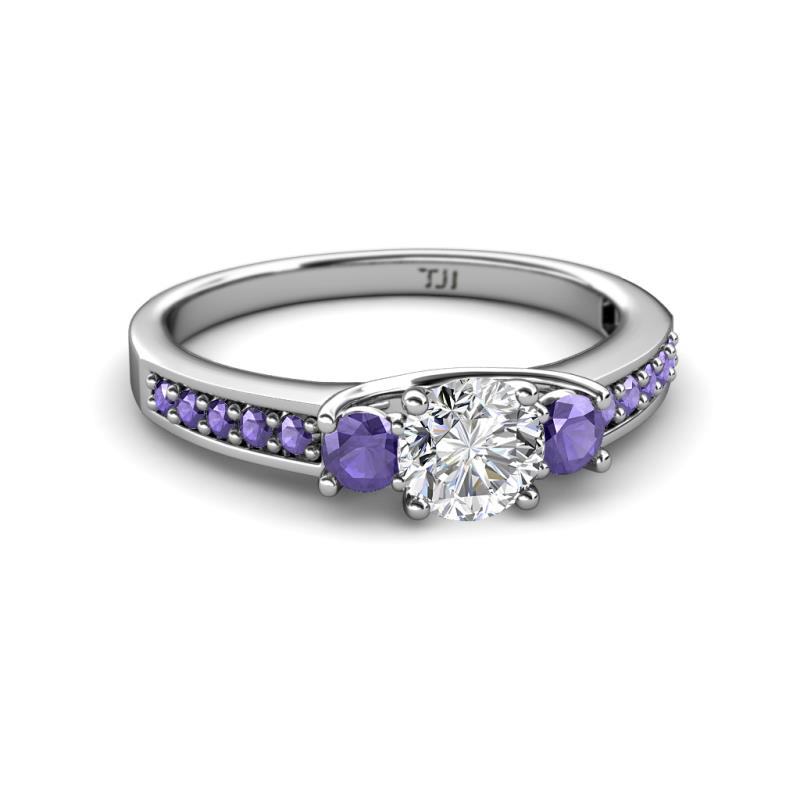 Round Diamond and Iolite 1 ctw Womens Three Stone Engagement Ring with Iolite on Side Bar 925 Sterling Silver More Details ...