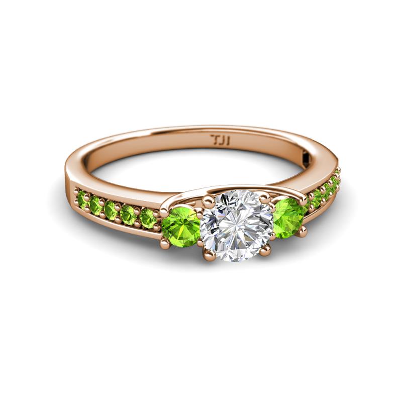 Round Diamond and Peridot 1 ctw Womens Three Stone Engagement Ring with Peridot on Side Bar 14K Rose Gold More Details ...