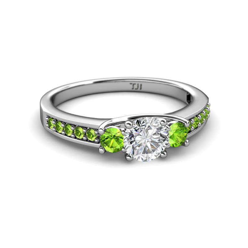 Round Diamond and Peridot 1 ctw Womens Three Stone Engagement Ring with Peridot on Side Bar 925 Sterling Silver More Details ...