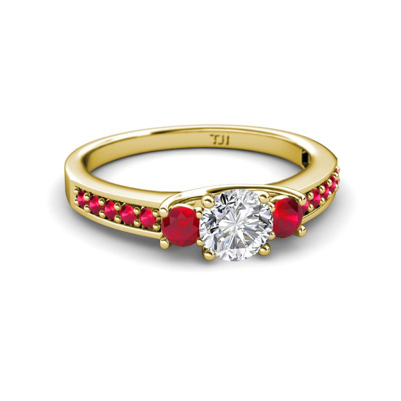 Round Diamond and Ruby 1 ctw Womens Three Stone Engagement Ring with Ruby on Side Bar 14K Yellow Gold More Details ...