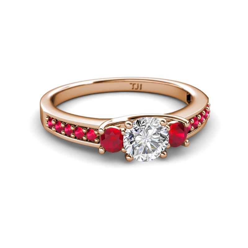 Round Diamond and Ruby 1 ctw Womens Three Stone Engagement Ring with Ruby on Side Bar 14K Rose Gold More Details ...