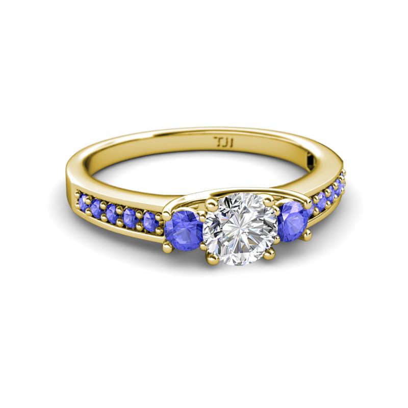 Round Diamond and Tanzanite 1 ctw Womens Three Stone Engagement Ring with Tanzanite on Side Bar 14K Yellow Gold More Details ...