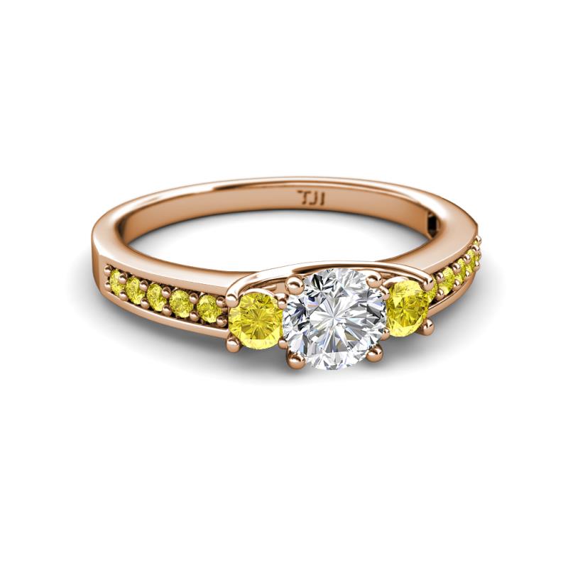 Round Diamond and Yellow Sapphire 1 ctw Womens Three Stone Engagement Ring with Yellow Sapphire on Side Bar 14K Rose Gold More Details ...