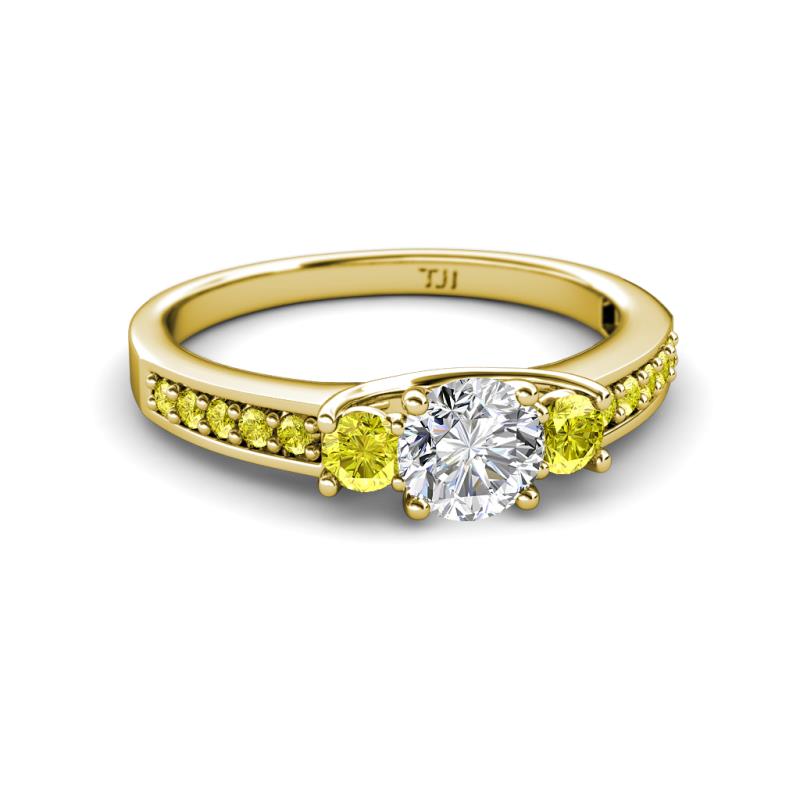 Round Yellow and White Diamond 1 ctw Womens Three Stone Engagement Ring with Yellow Diamond on Side Bar 14K Yellow Gold More Details ...