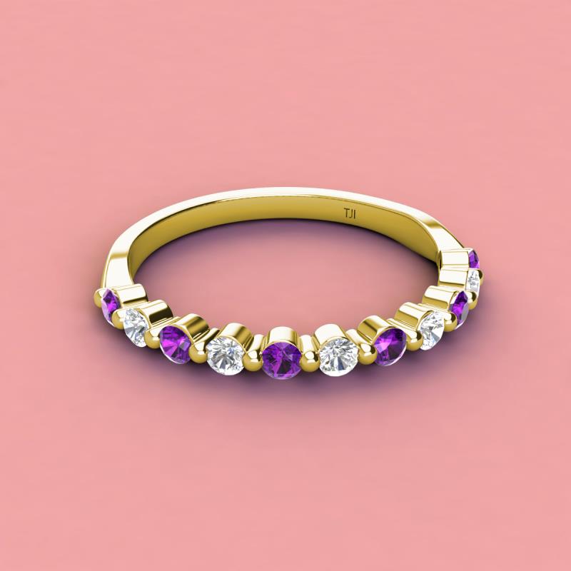 Round Amethyst and Diamond 0.53 ctw 11 Stone Women Wedding Band Stackable 10K Yellow Gold More Details ...