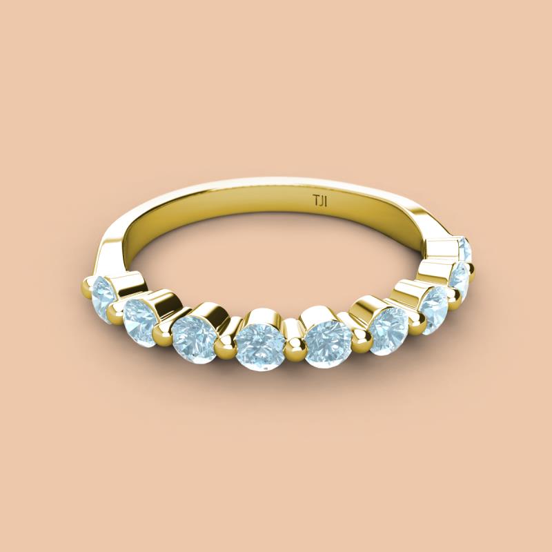 Round Aquamarine 0.72 ctw 9 Stone Women Wedding Band Stackable 10K Yellow Gold More Details ...