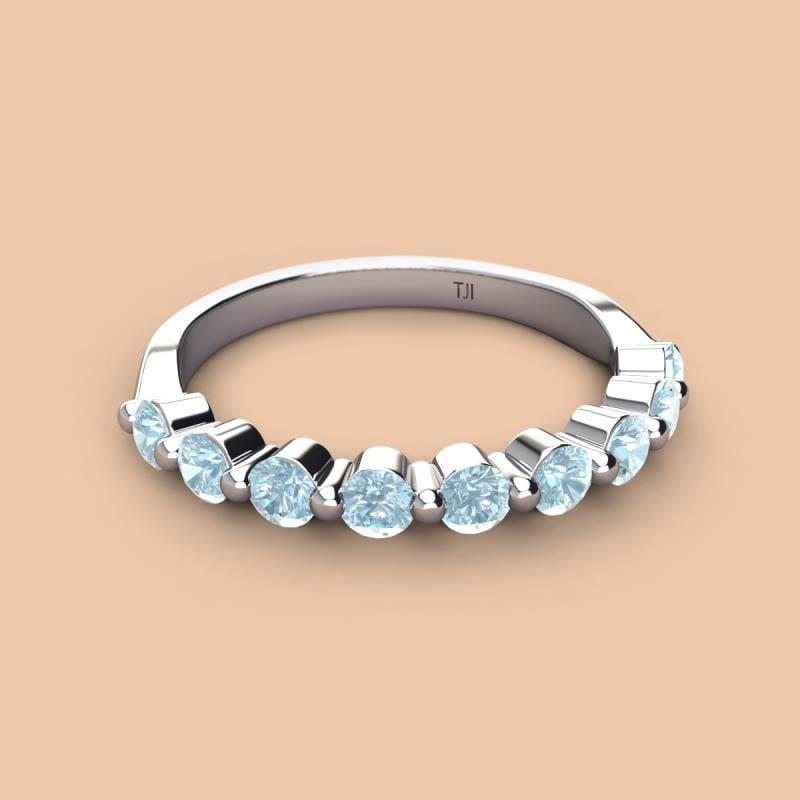 A Jewelry is a way of keeping memories alive. Do it with this Dazzling 9 Round Sparkling Aquamarine Wedding Band delicately crafted in Shared-Prong setting.The perfect match to your engagement ring, or you can wear it stand alone.