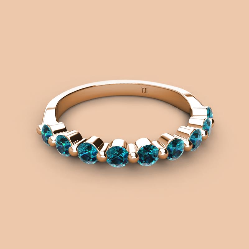 Round Blue Diamond 0.90 ctw 9 Stone Women Wedding Band Stackable 18K Rose Gold More Details ...