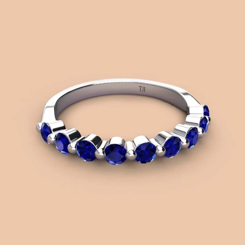 A Jewelry is a way of keeping memories alive. Do it with this Dazzling 9 Round Sparkling Blue Sapphire Wedding Band delicately crafted in Shared-Prong setting.The perfect match to your engagement ring, or you can wear it stand alone.