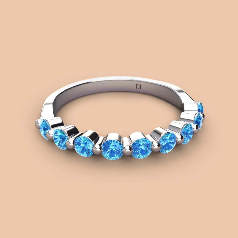 A Jewelry is a way of keeping memories alive. Do it with this Dazzling 9 Round Sparkling Blue Topaz Wedding Band delicately crafted in Shared-Prong setting.The perfect match to your engagement ring, or you can wear it stand alone.
