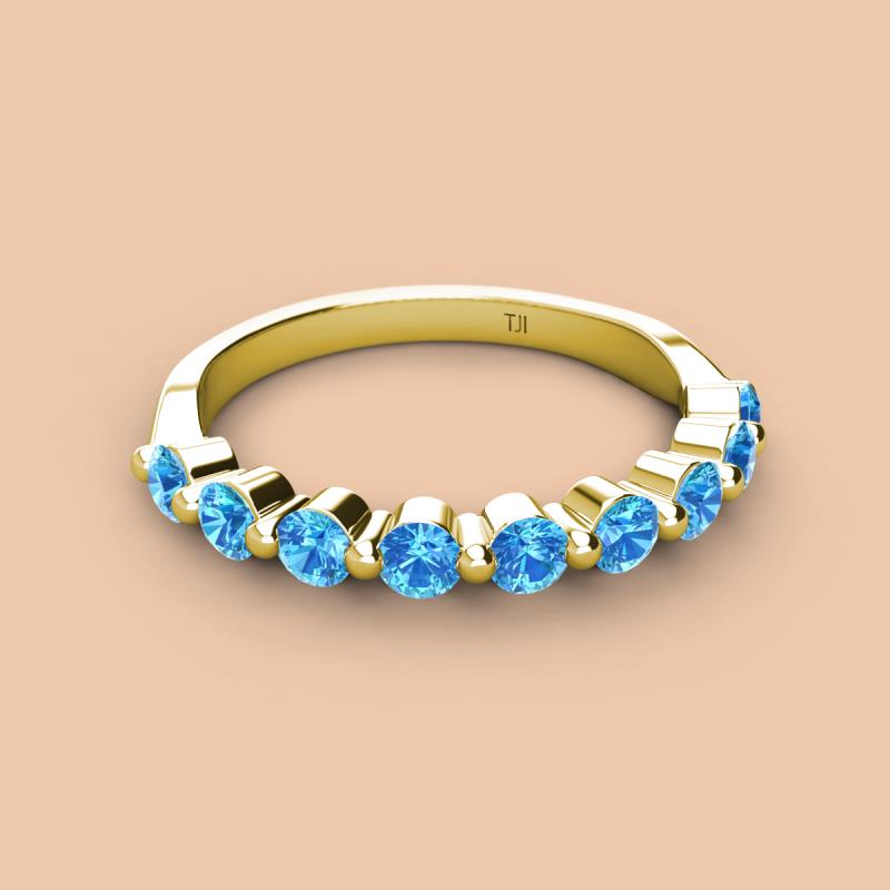 A Jewelry is a way of keeping memories alive. Do it with this Dazzling 9 Round Sparkling Blue Topaz Wedding Band delicately crafted in Shared-Prong setting.The perfect match to your engagement ring, or you can wear it stand alone.