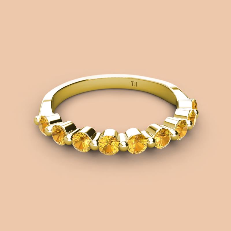 A Jewelry is a way of keeping memories alive. Do it with this Dazzling 9 Round Sparkling Citrine Wedding Band delicately crafted in Shared-Prong setting.The perfect match to your engagement ring, or you can wear it stand alone.