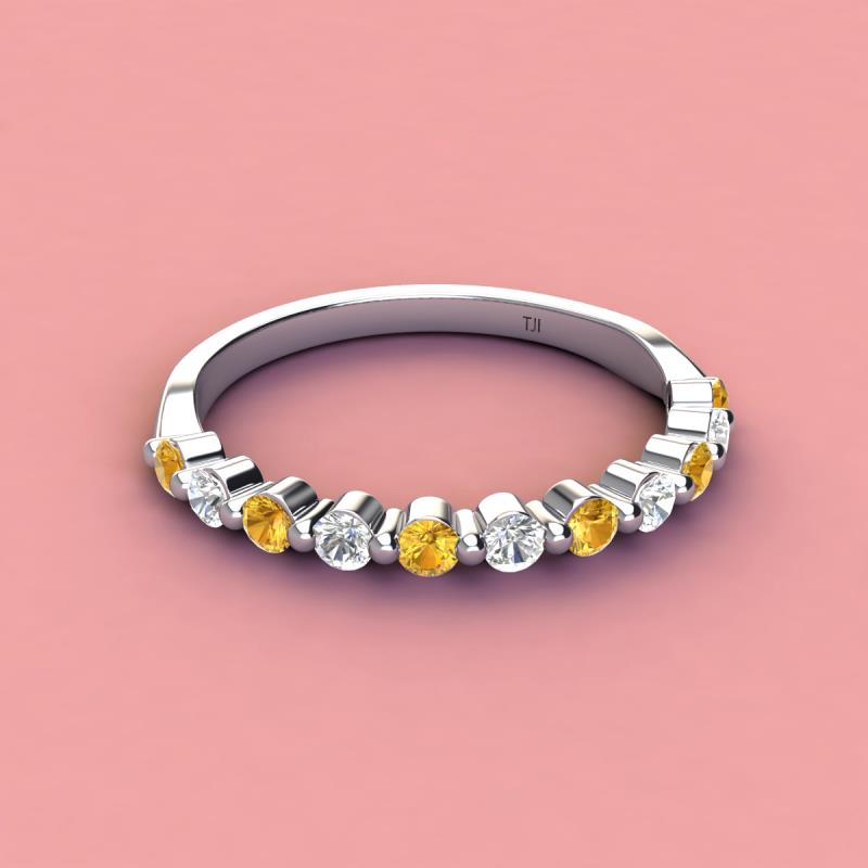 A Jewelry is a way of keeping memories alive. Do it with this Dazzling 11 Stone Wedding Band with a series of Round Sparkling Citrine and Lab Grown Diamond delicately crafted in Shared-Prong setting.The perfect match to your engagement ring, or you can wear it stand alone.