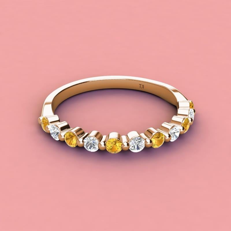 Round Citrine and Lab Grown Diamond 0.53 ctw 11 Stone Women Wedding Band Stackable 10K Rose Gold More Details ...