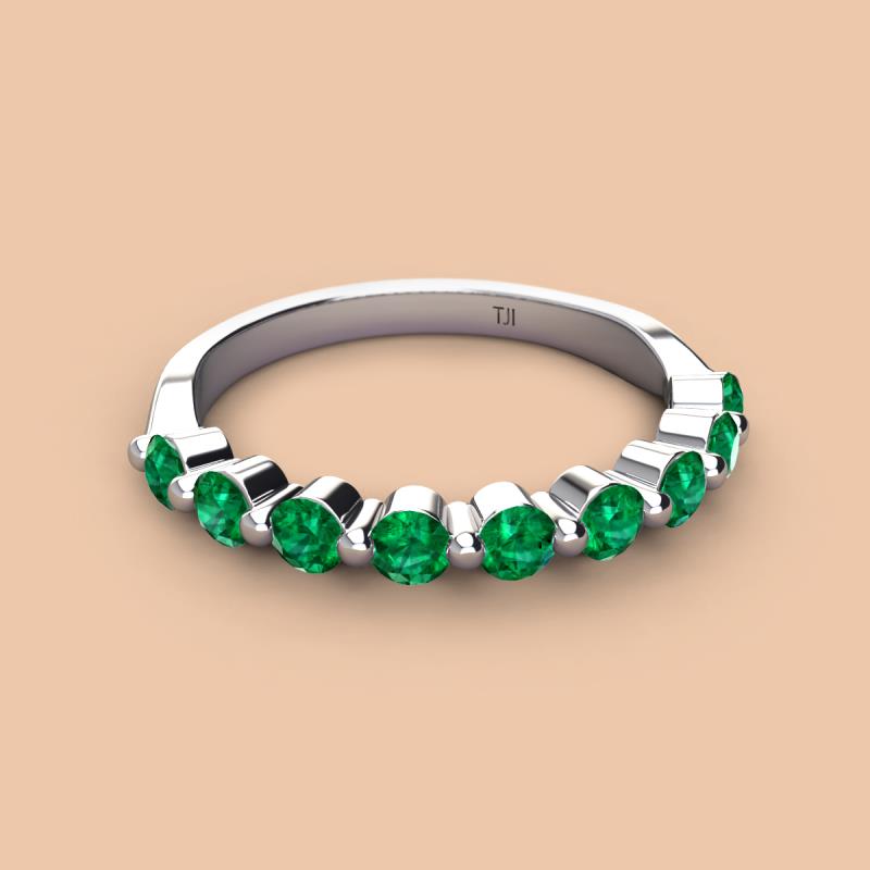 A Jewelry is a way of keeping memories alive. Do it with this Dazzling 9 Round Sparkling Emerald Wedding Band delicately crafted in Shared-Prong setting.The perfect match to your engagement ring, or you can wear it stand alone.