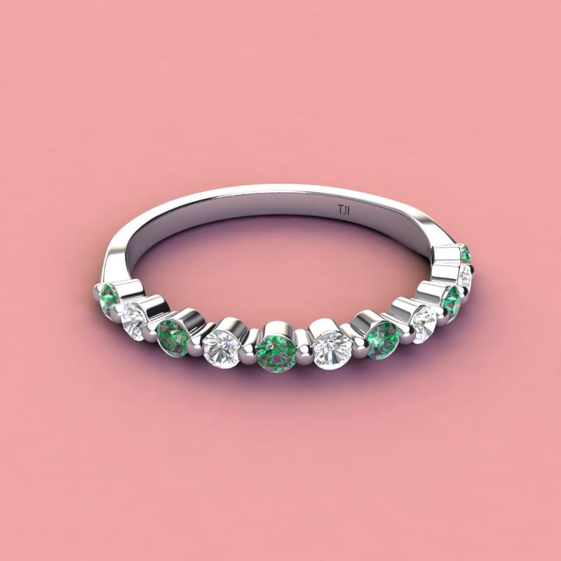 A Jewelry is a way of keeping memories alive. Do it with this Dazzling 11 Stone Wedding Band with a series of Round Sparkling Lab Created Alexandrite and Lab Grown Diamond delicately crafted in Shared-Prong setting.The perfect match to your engagement ring, or you can wear it stand alone.