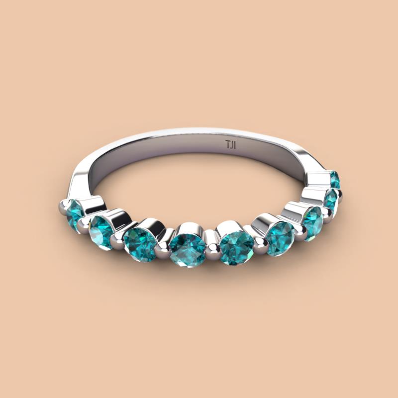 Round London Blue Topaz 0.99 ctw 9 Stone Women Wedding Band Stackable 14K White Gold More Details ...