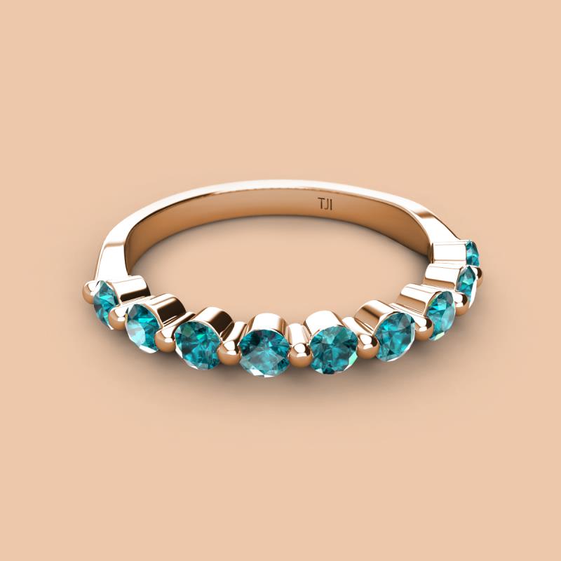 Round London Blue Topaz 0.99 ctw 9 Stone Women Wedding Band Stackable 14K Rose Gold More Details ...
