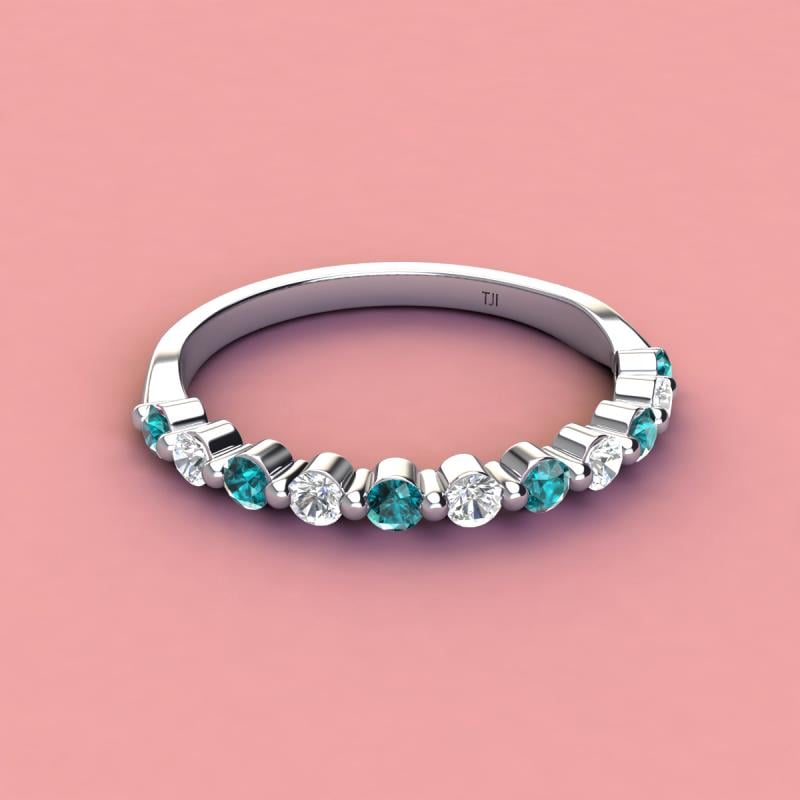 A Jewelry is a way of keeping memories alive. Do it with this Dazzling 11 Stone Wedding Band with a series of Round Sparkling London Blue Topaz and Lab Grown Diamond delicately crafted in Shared-Prong setting.The perfect match to your engagement ring, or you can wear it stand alone.