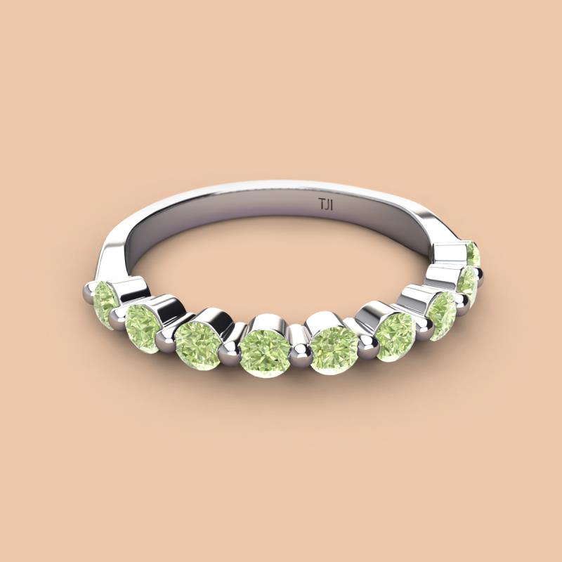 A Jewelry is a way of keeping memories alive. Do it with this Dazzling 9 Round Sparkling Peridot Wedding Band delicately crafted in Shared-Prong setting.The perfect match to your engagement ring, or you can wear it stand alone.