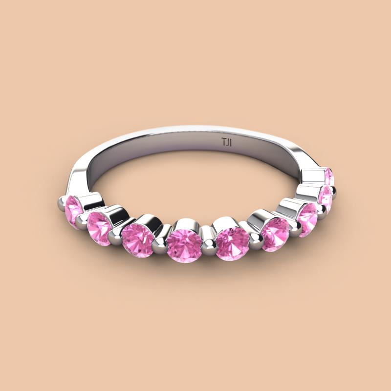 Round Pink Sapphire 1.53 ctw 9 Stone Women Wedding Band Stackable 10K White Gold More Details ...