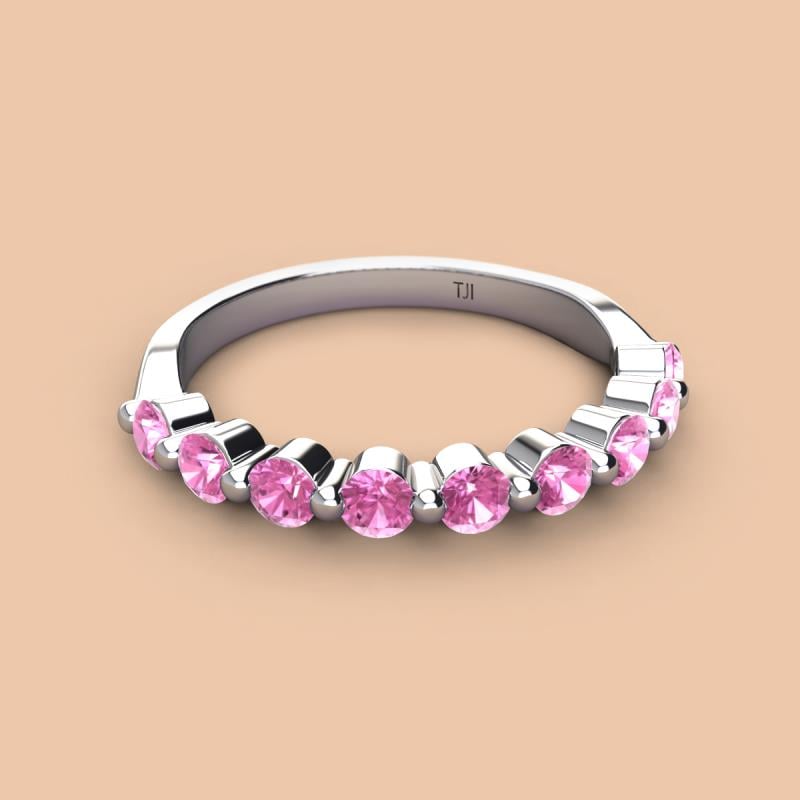 A Jewelry is a way of keeping memories alive. Do it with this Dazzling 9 Round Sparkling Pink Sapphire Wedding Band delicately crafted in Shared-Prong setting.The perfect match to your engagement ring, or you can wear it stand alone.