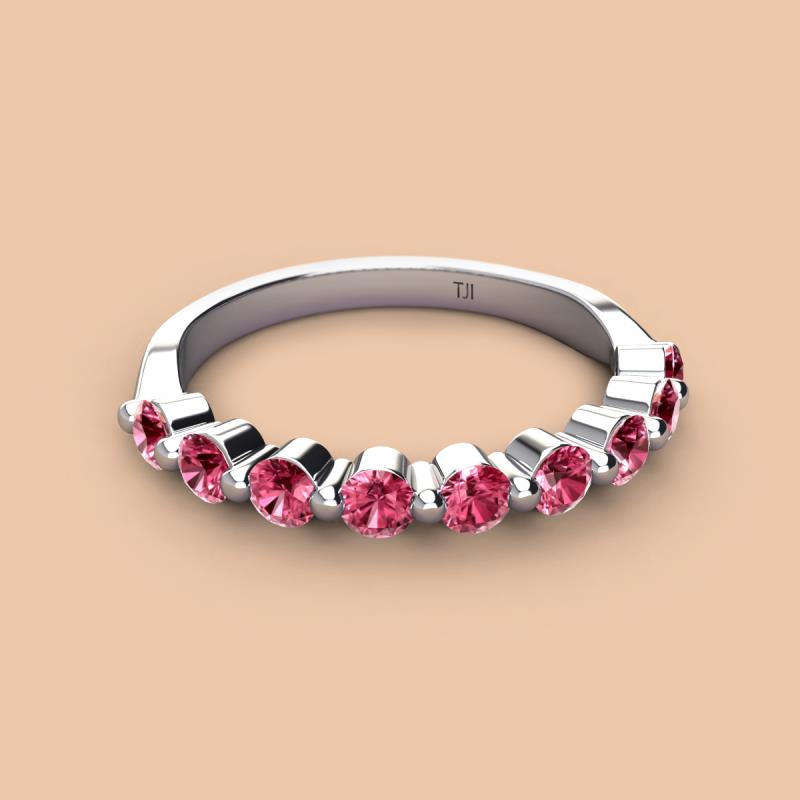 A Jewelry is a way of keeping memories alive. Do it with this Dazzling 9 Round Sparkling Pink Tourmaline Wedding Band delicately crafted in Shared-Prong setting.The perfect match to your engagement ring, or you can wear it stand alone.