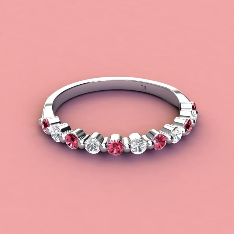 A Jewelry is a way of keeping memories alive. Do it with this Dazzling 11 Stone Wedding Band with a series of Round Sparkling Pink Tourmaline and Diamond delicately crafted in Shared-Prong setting.The perfect match to your engagement ring, or you can wear it stand alone.